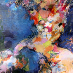 “This is when I need to step back, listen in and work with a very light hand. The painting will tell me what it needs. Sometimes I need to stop and set it aside for a long time. Sometimes I need to take drastic action like continuing upside down. At times I can proceed really quickly and everything is very clear. Sometimes I need to take it slowly, especially when working with oils, which I favor lately. Surprises me every time.”